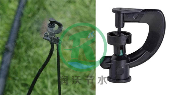 旋轉噴頭是一種常用的微噴灌水器,相對于折射微噴頭而言,其噴灑半徑較大,噴灑霧化效果較差,多為水滴狀,多用于草坪、果樹、溫室、大棚和花卉灌溉。