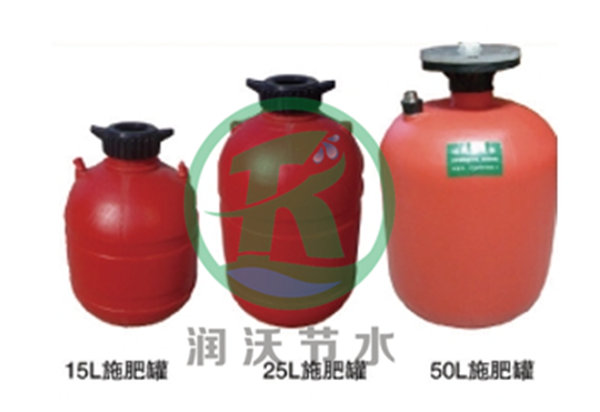 施肥罐在首部系統(tǒng)中采用旁通的方式連接立式或臥式圓柱形罐體,體積有15升、25升、50升等型號。施肥罐在施肥時使用,打開罐體上部,法蘭蓋從加肥口按照施肥面積可向罐體內(nèi)部加入相應(yīng)數(shù)量的肥料,然后先打開施肥罐進水閥,待看見施肥罐出水管出水后再打開施肥罐的出水閥門,即可施肥。